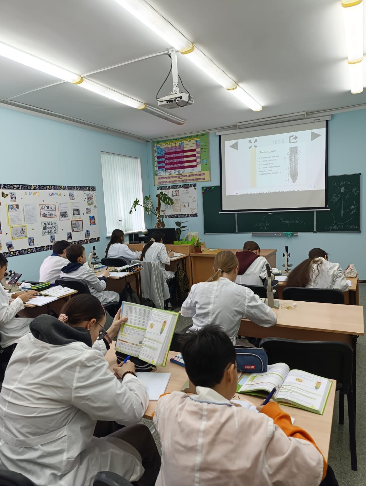 Бүгін 7-сынып оқушылары «Ішкі тамыр құрылымы. Тамыр аймақтары» тақырыбында өте қызықты биология сабағы өткізді.