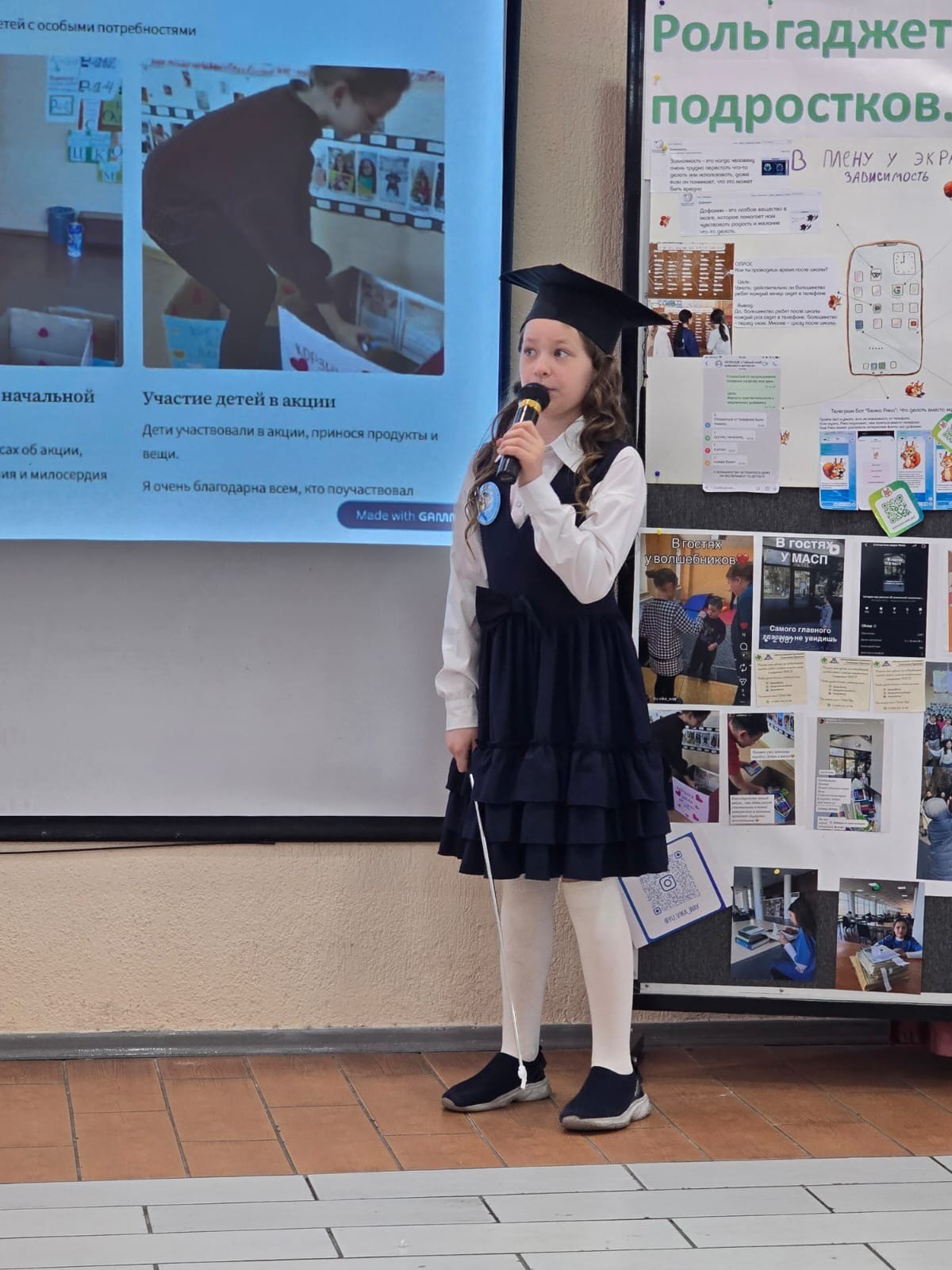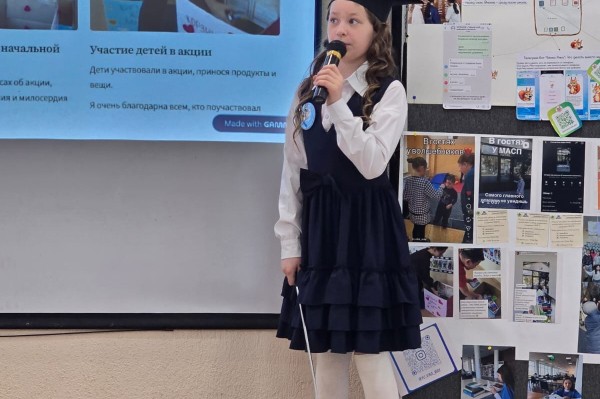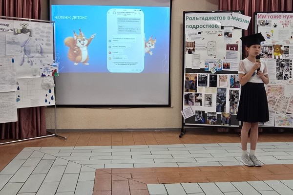 On April 6th, experts and guests listened to presentations by third-grade students Adelina Egorova, "Captive of the Screen," Victoria Yurchenko, "What It Means to Be a Compassionate Person," and Alexandra Erofeeva, "City Under the Haze." We are delighted with how seriously these young academics approached the project: from their first idea to their brilliant defense. Congratulations!