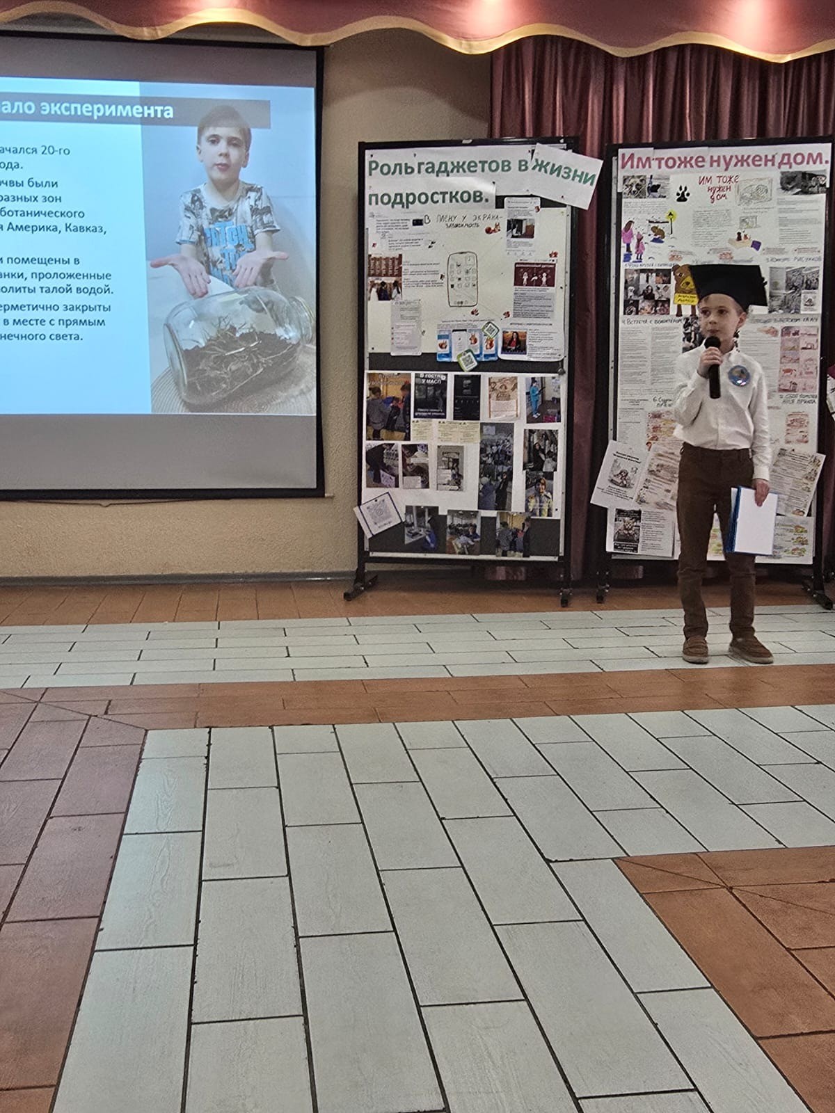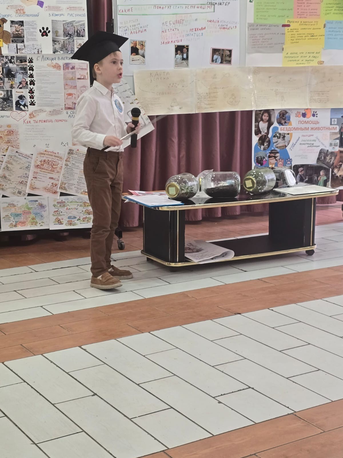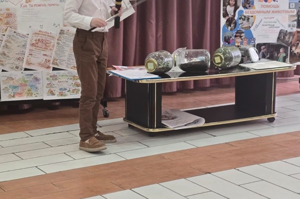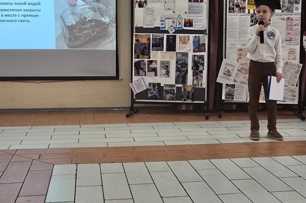 - Andrey Cheslavsky (3rd grade) presented his project "Closed Ecosystem." Andrey literally "tamed" nature by creating a miniature world in glass. He vividly explained how life can sustain itself and inspired the audience to reflect on the delicate balance of our vast planet.