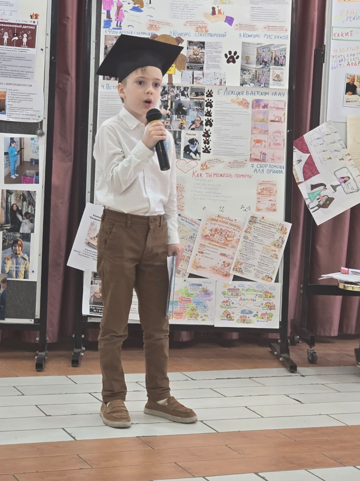 - Yuliana Astratyan (4th grade) addressed a pressing social issue: "Homeless Animals: Causes and Solutions." Yuliana conducted a thorough analysis of why abandoned pets end up on the streets and proposed concrete steps we can each take to help them. Unfortunately, due to health reasons, Yuliana participated in the presentation remotely, sharing a video presentation with the audience. We wish Yuliana a speedy recovery and look forward to seeing her at the awards ceremony.