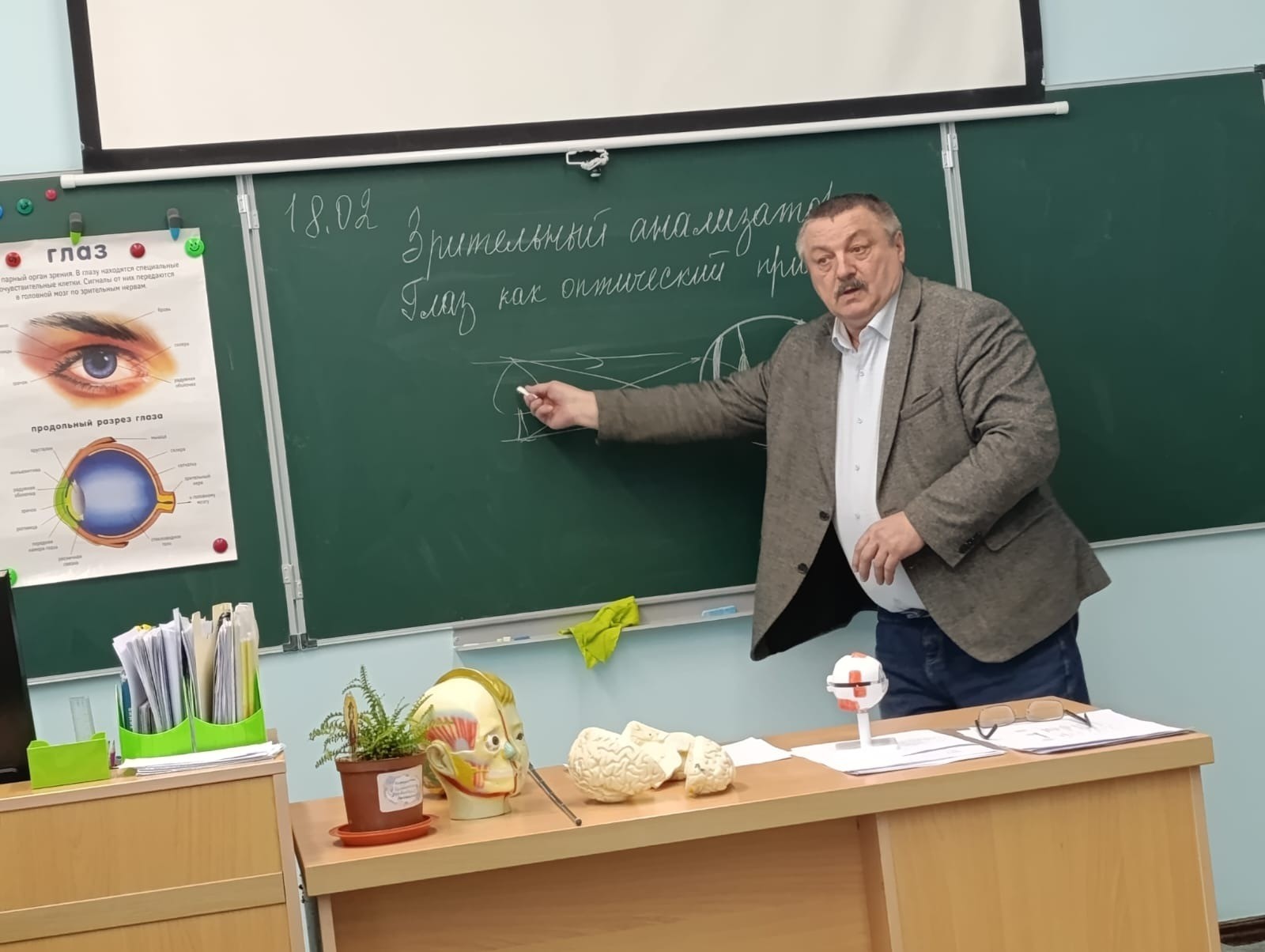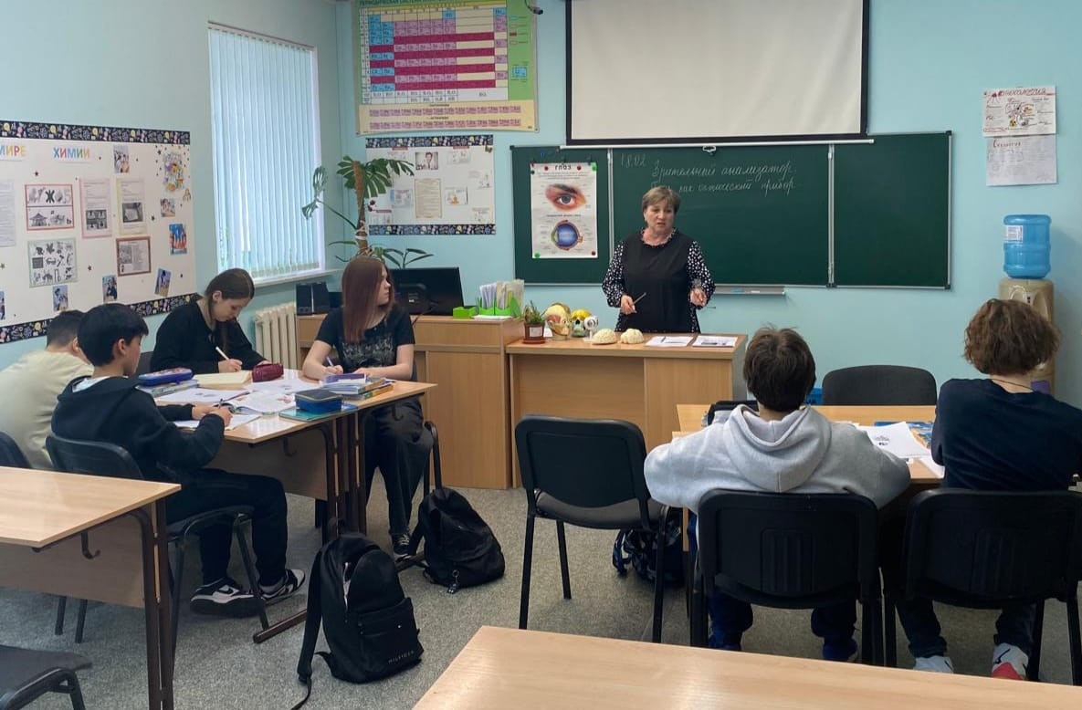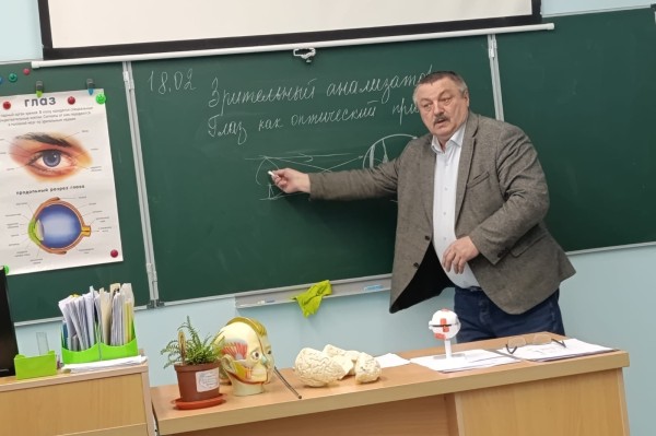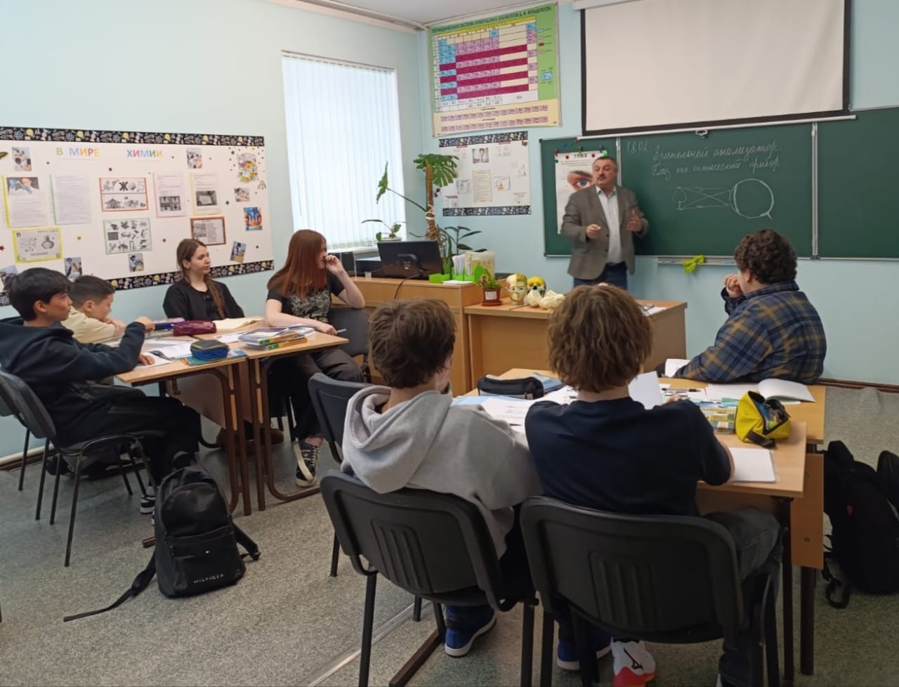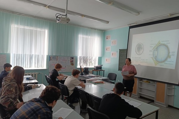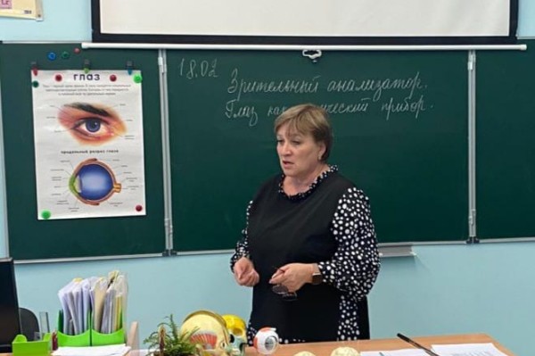 В 8 классе проведен интегрированный урок по биологии, физике, математике и русскому языку на тему "Зрительный анализатор. Глаз как оптическая система".