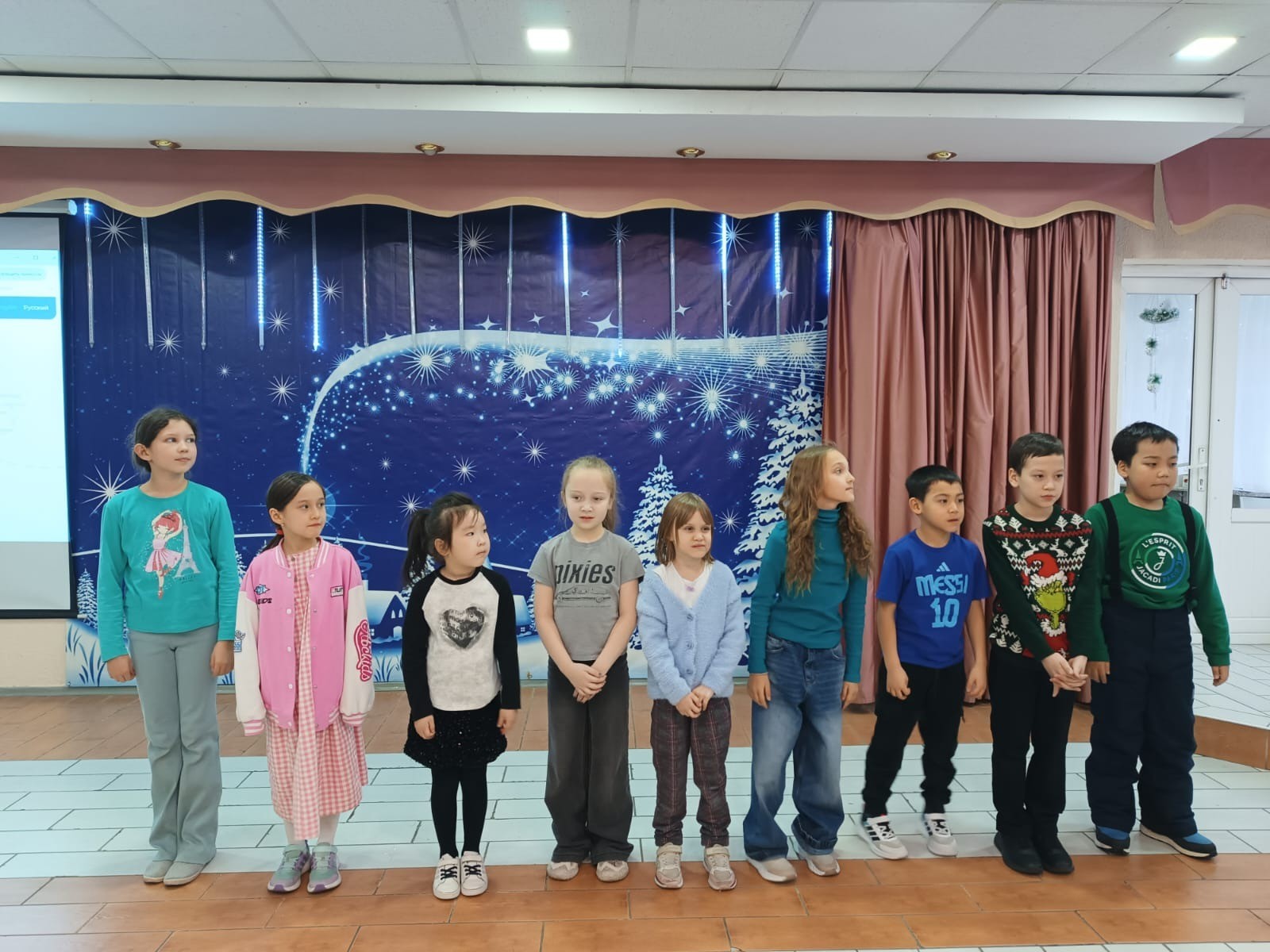 Тоқсанның соңғы аптасы нағыз Жаңа жыл мерекесіне айналды. Оқушылар Лермонтов атындағы ұлттық орыс театрында өткен «Жаңа жыл сағатының құпиясы» атты жаңа жылдық қойылымға қатысты. Сыныптарда «Жаңа жыл шамдары» өткізіліп, олар квесттер мен байқауларға қатысып, «Құпия Аяз ата» сыйлықтарымен алмасып, өткен жылды қорытындылады.
